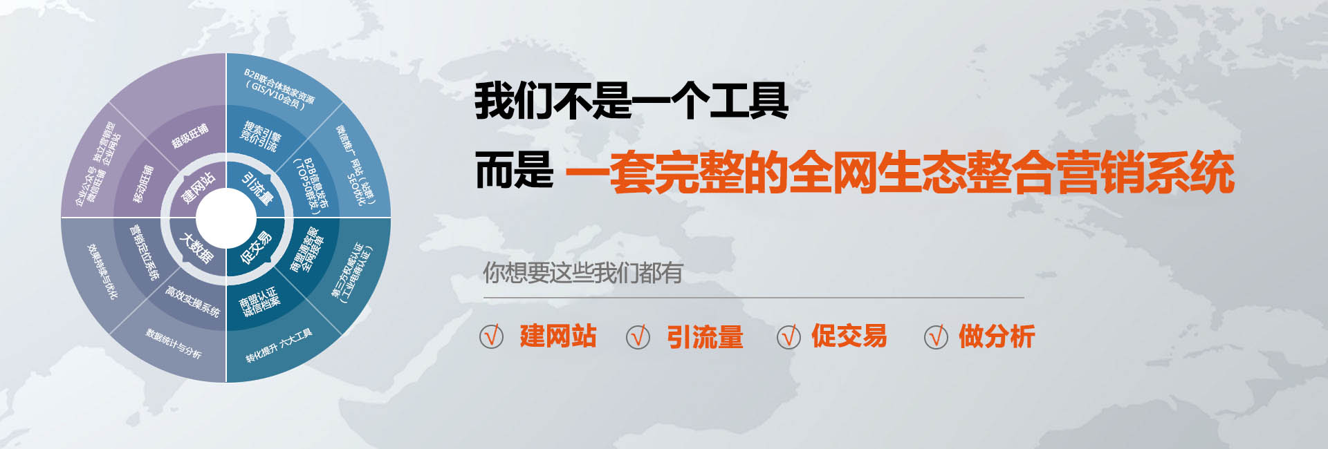 我們多年專注網(wǎng)站建設、SEO優(yōu)化、網(wǎng)絡營銷推廣為基礎,不斷拓展多渠道、多流量的營銷平臺及產(chǎn)品,助力企業(yè)獲得優(yōu)質客戶。